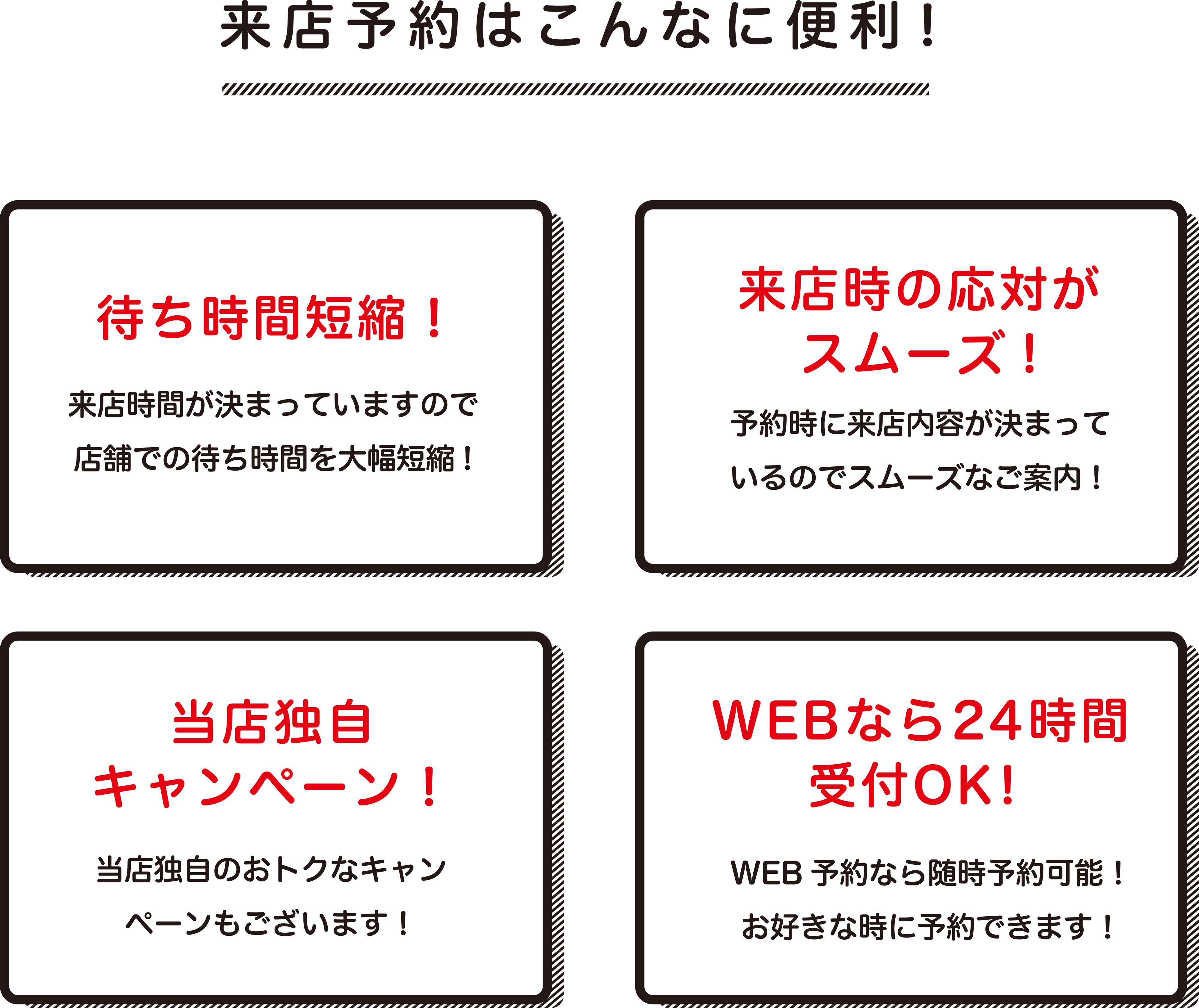 【来店予約につきまして】※当日の混雑状況により、多少待ち時間をいただく場合があります。